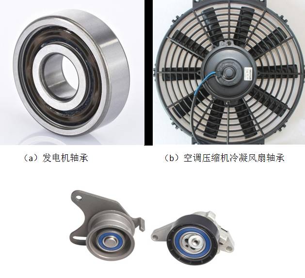 发动机是汽车的心脏,源源不断为其他部件提供动力。内部轴承先前以滑动轴承占主导,目前多数在改进轴承性能的前提下,采用密封球轴承,图2为发动机中的几种典型轴承。