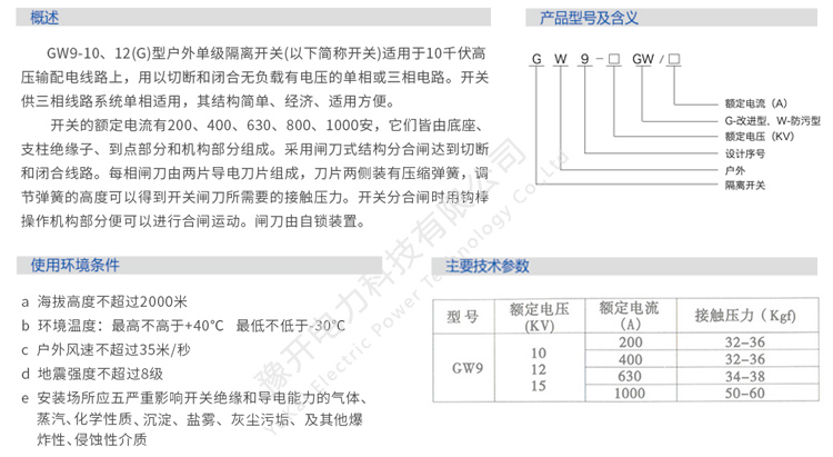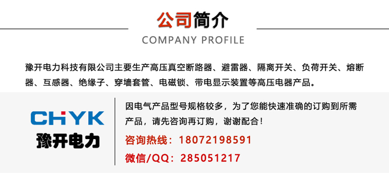 主营:豫开电力从事高压电器产品制造销售, 生产高压真空断路器,隔离开关,负荷开关,六氟化硫断路器,高压电力计量箱,跌落式熔断器,多油/少油开关断路器,接地开关,操作机构,避雷器,穿墙套管,过电压保护器,绝缘子,等系列产品。