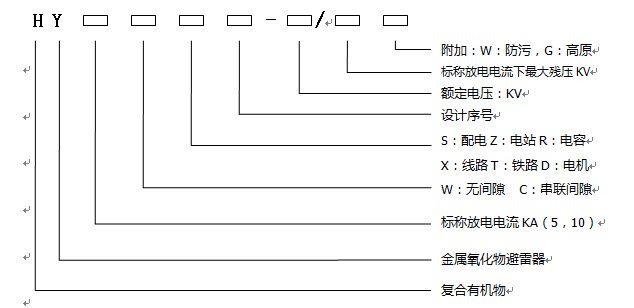 依据JB/T 8459-1996《避雷器产品型号编制方法》,金属氧化物避雷器产品型号说明如下: