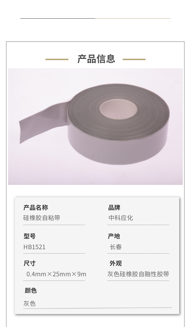 中科应化电工胶带灰色硅橡胶自粘带耐高温达大型电机钢厂熔炉电缆绝缘防护