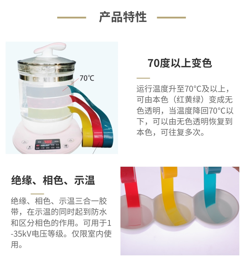 电气产品 > 电气附件 > 胶带 > 中科应化电工胶带硅橡胶自融高温高压变色示温带红黄蓝随温度变色反复使用